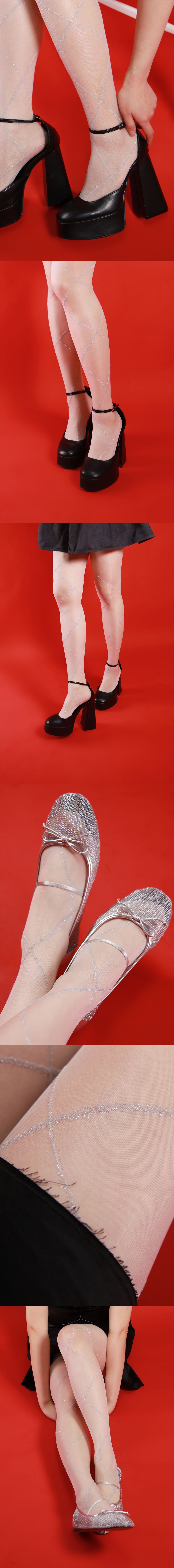 glittery cross line tights (white silver)