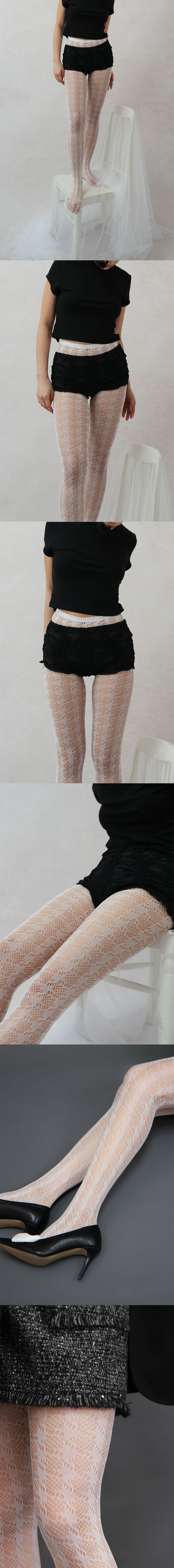 houndstooth check mesh tights (white)